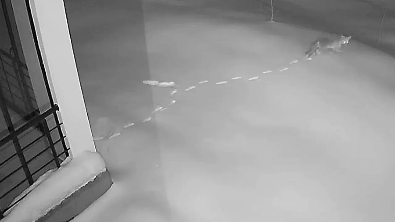 Elazığ'da kardan dolayı yiyecek bulamayan ve köylerdeki evlerin kenarlarına kadar inen tilki, tavşan ve sansarlar güvenlik kamerasına yansıdı.