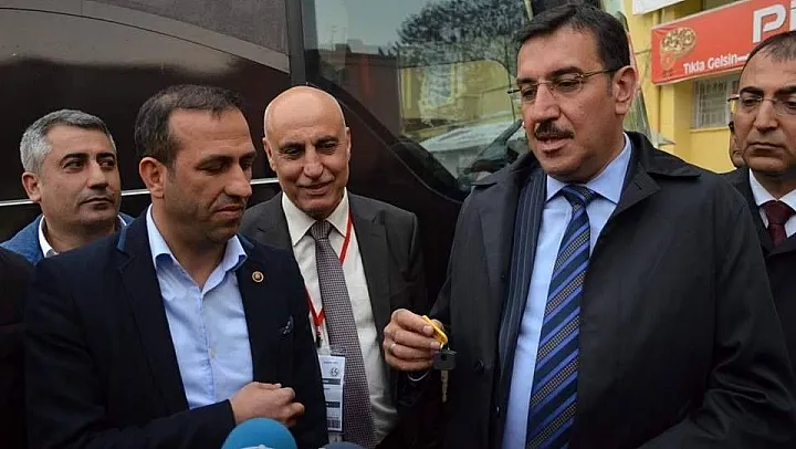 Bakan Tüfenkci konuşmaların ardından takım otobüsünün anahtarını kulüp başkanı Adil Gevrek'e teslim etti.