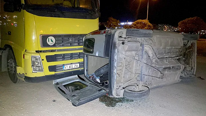 Plakası 23 AJ 481 olan hafif ticari araç, henüz kimliği öğrenilemeyen sürücüsünün kontrolünden çıkarak takla attı ve yol kenarında park halindeki tıra çarparak durabildi.