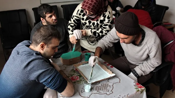 Elazığ'da açılan el sanatları, ahşap boyama gibi kurslara katılan engelliler, evlerine hapis olmaktan çıkıp sosyal yaşama karışarak engellerini unutuyor.