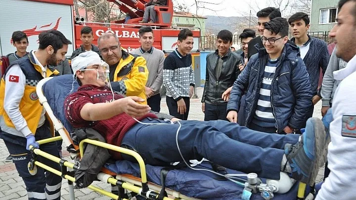 Gölbaşı İbn-i Sina Mesleki ve Teknik Lisesi idaresi tarafından yapılan tatbikatta okulun bahçesinde çıkarılan yangında, okul idaresi ve öğretmenler ile Gölbaşı Belediyesi itfaiye ekibi, 112 acil sağlık ekibi gerçeği aratmayan bir yangın ve gerçek bir müdahale örneği sergiledi.