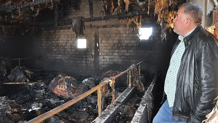Olay, gece saatlerinde ilçeye bağlı Türkbağları mevkisinde Hüseyin Kepez'e ait ahırda meydana geldi. Edinilen bilgiye göre, içinde çoğunluğu hamile olan ineklerin bulunduğu ahırdan alevler yükseldiğini gören komşuları, Hüseyin Kepez'e haber verdi. Çatısındaki ahşap malzeme ve içindeki samanlar nedeniyle kısa sürede büyüyen alevler, ahırı alev topuna çevirdi. Hayvanların sahibi ve vatandaşlar, alevlere müdahale etmek istese de başarılı olamadı.