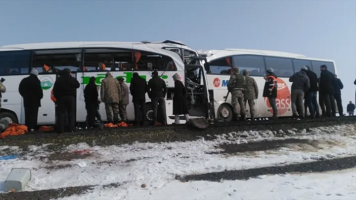 Iğdır'da iki yolcu otobüsünün çarpışması sonucu 8 kişi öldü, 28 kişi yaralandı.