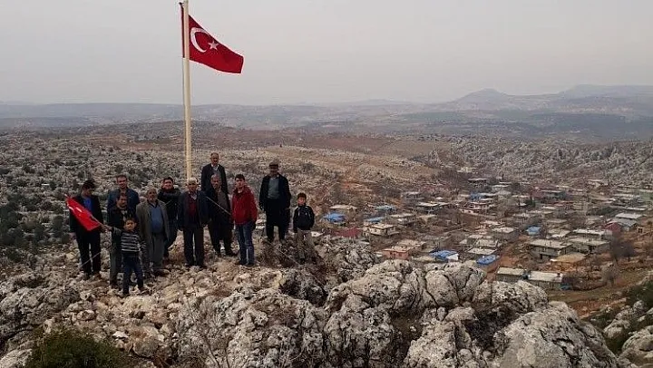 Adıyaman'ın Gölbaşı ilçesine bağlı Gidikli köyü halkı Afrin'de başlatılan Zeytin Dalı Harekatına destek vermek için bin 25 metre yüksekliğindeki tepeye çıkarak bayrak dikti.