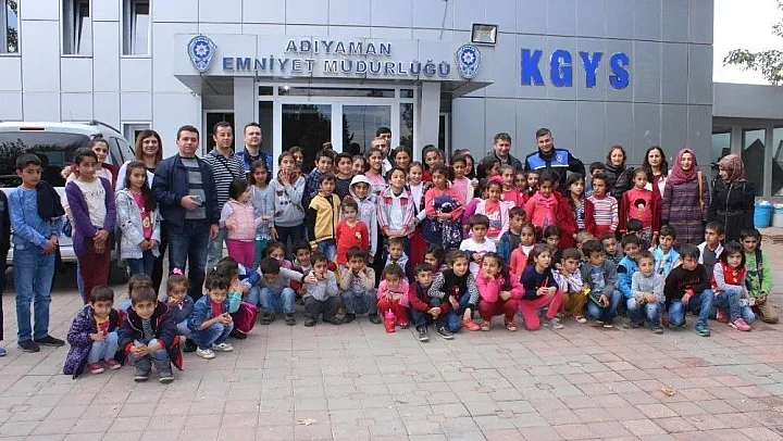 Adıyaman'da 'Sende Gülümse' projesi kapsamında Adıyaman Terörle Mücadele Şube Müdürlüğü ekipleri hiç sinemaya gitmemiş 500 öğrenciyi önce film izlemeye daha sonra ise polis evine götürdü. Adıyaman'a Bağlı Yazıbaşı Köyü okulunda eğitim gören öğrenciler ilk olarak sinemada İksir filmini izleyen öğrencilere polis evinde yemek ikramında bulunuldu. Adıyaman İl Emniyet Müdür Metin Alper, emniyet şube müdürleri ile polis memurlarının da katıldığı yemek programı sonrası öğrenciler Kent Güvenlik Yönetim Sistemi (KGYS) binasını gezdi. Polis ekipleri burada öğrencilere 155'e gelen ihbarların nasıl değerlendirildiği, olay yerine ekip sevk edilmeleri ve KGYS'nin çalışma sistemini anlattı.
