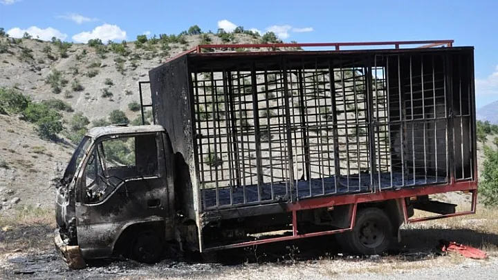 Tunceli'de özel bir şirkete ait dağıtım aracı, yol kesen terörist bir grup tarafından yakıldı.
