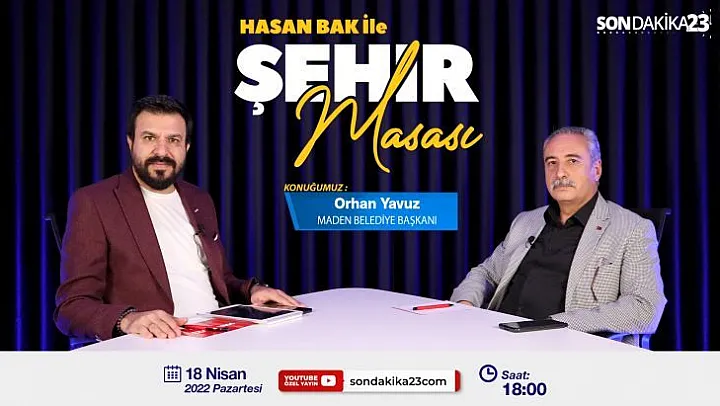 Haberler Şehir Masası Şehir Masası Yeni bölümünde Maden Belediye Başkanı Orhan Yavuz'un konuk olduğu 'Hasan Bak İle Şehir Masası' 18 Nisan Pazartesi (bugün) 18.00'de Son Dakika 23 YouTube kanalında yayında. PAYLAŞ 18.04.2022 08:40 Güncelleme: 18.04.2022 08:40 TAKİP ET