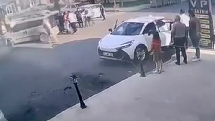 Çevredeki vatandaşların müdahalesiyle şahıs sakinleştirilirken, yaşananlar hem sürücünün cep telefonu hem de güvenlik kameralarına yansıdı.