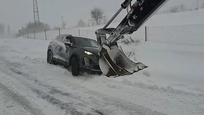 Araçlar karda mahsur kaldı
