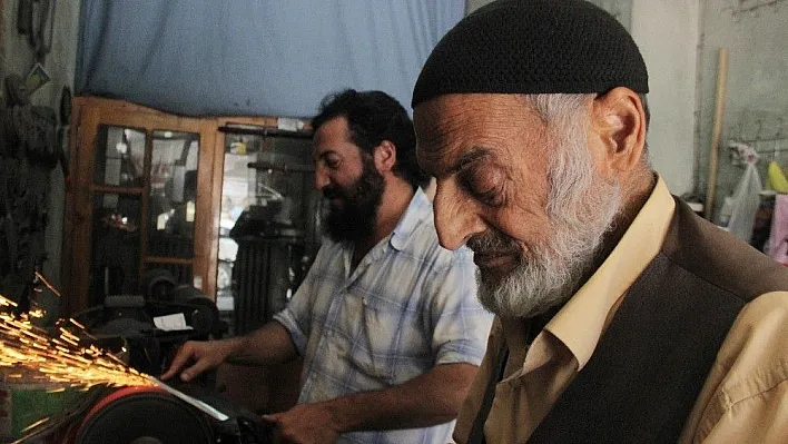Elazığ'da yaşayan 71 yaşındaki Hasan Kahya, şu anki mesleği olan bilemeciliği, ustası olan oğlundan öğrendi.