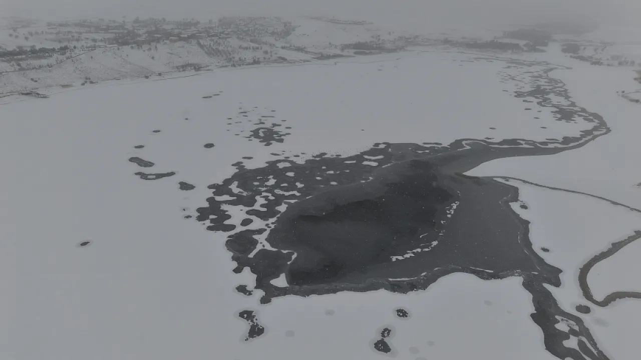 Elazığ’da etkili olan soğuk hava dalgası nedeniyle hava sıcaklığı eksi 11’lere kadar düştü. Yaşanan soğuklar yaklaşık 1,3 kilometrekare büyüklüğündeki Cip Baraj Gölü’nün donmasına neden oldu. Buz tutan gölün yüzeyi, ardından yağan karla karla kaplandı. Karla kaplanan alanlar havadan dronla görüntülendi.