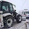 Elazığ'ın Baskil ilçesinde karla kaplı yolda kalan ambulansı, İl Özel İdaresi ekipleri kurtardı.