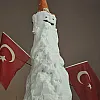 Arda Erulaş ise "Kar, kömür, duba ve bayrak kullandık. Kürek desteğiyle yaptık. Biraz abartalım dedik. Yaklaşık 4 ya da 4 buçuk metre oldu" ifadelerini kullandı.