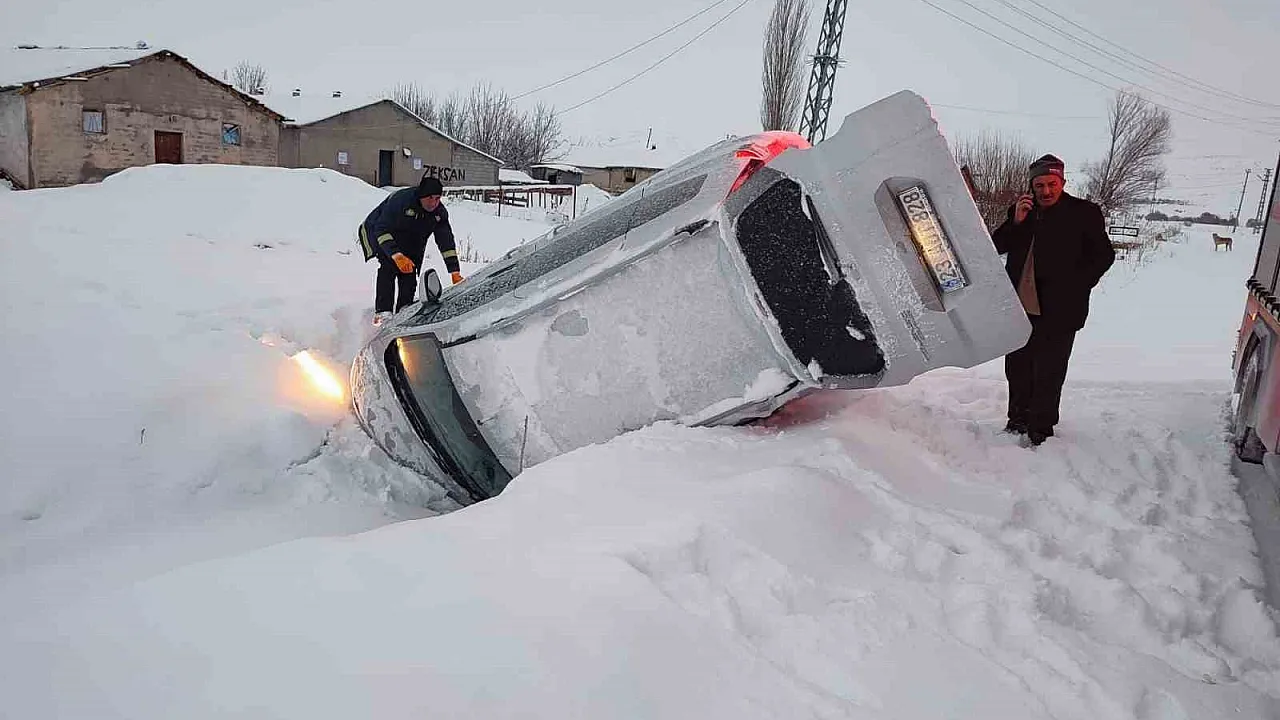 Elazığ'da karda kayan araç devrildi
