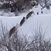 Doğada yiyecek bulmakta güçlük çeken kurtlar, Elazığ’ın Gözeli köyüne bağlı Tarlatepe mezrasında görüldü. Karların arasında yürüyen kurt sürüsü bir vatandaşın cep telefonu kamerasına yansıdı. Kurt sürüsü, bir süre sonra gözden kayboldu.