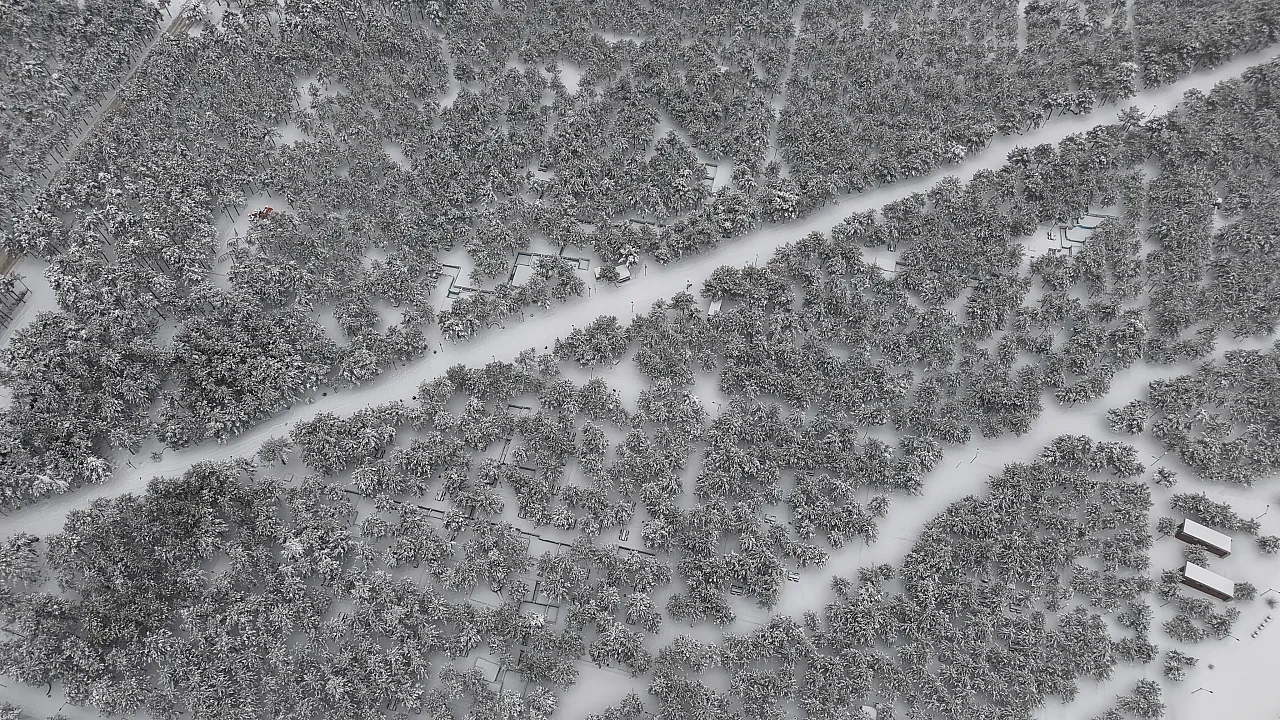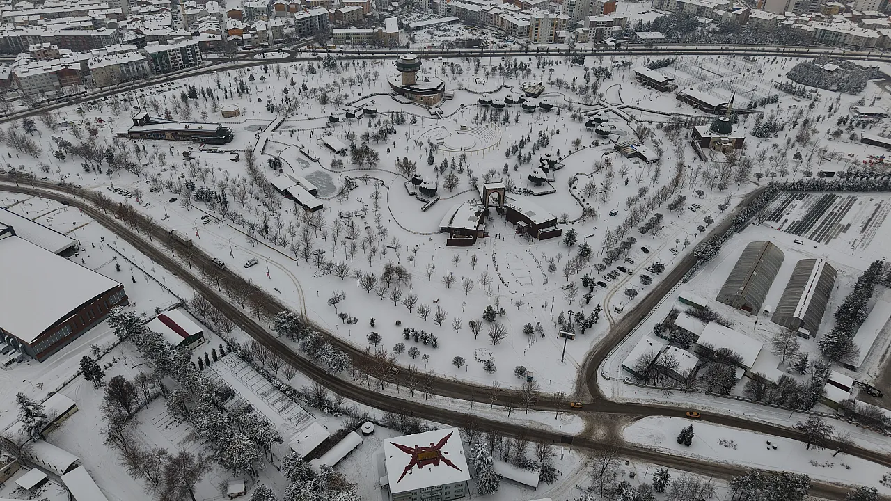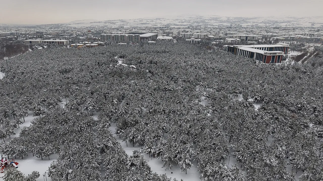 Elazığ'da kar yağışı sonrası şehrin kalbindeki Fırat Üniversitesi ormanı ve Kültür Park, binaların arasında yükselen beyaz bir vahaya dönüştü.