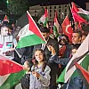 Ellerinde Filistin bayrakları taşıyan kalabalık, İsrail karşıtı sloganlar attı, tekbir getirdi.