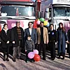 Yapılan konuşmaların ardından, 4 tır dolusu malzeme okunan dualarla birlikte ihtiyaç sahiplerine ulaştırılmak üzere yola çıktı.