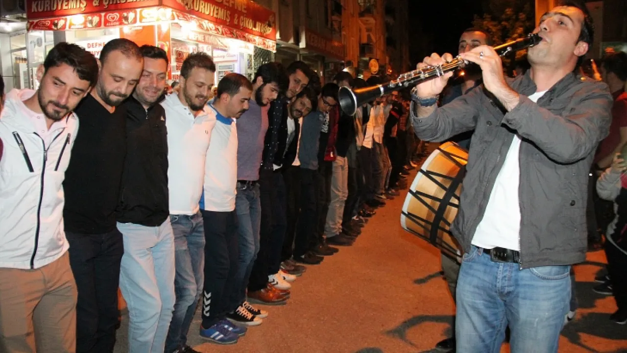 Elazığ'da bir araya gelen vatandaşlar davul, klarnet eşliğinde sahur halayı çekti.