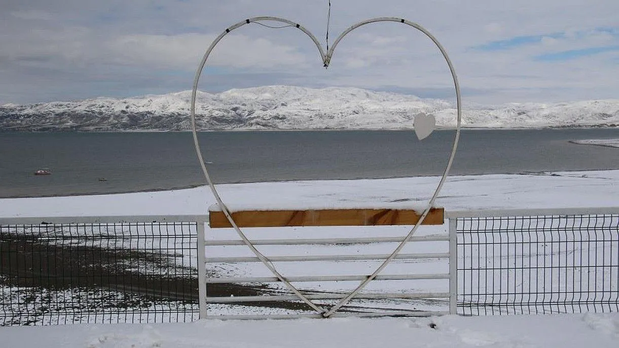 Elazığ'da Keban Baraj Gölü'nün havzasında yer alan Murat Nehri'ne sıfır konumda bulunan Aşağı İçme köyünde suların çekildiği alanların kar yağışı ile beyaza bürünmesiyle eşsiz bir manzara ortaya çıktı.