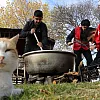 Gönüllüler, kazanın başında mamanın pişmesini bekleyen kedileri elleriyle besliyor.