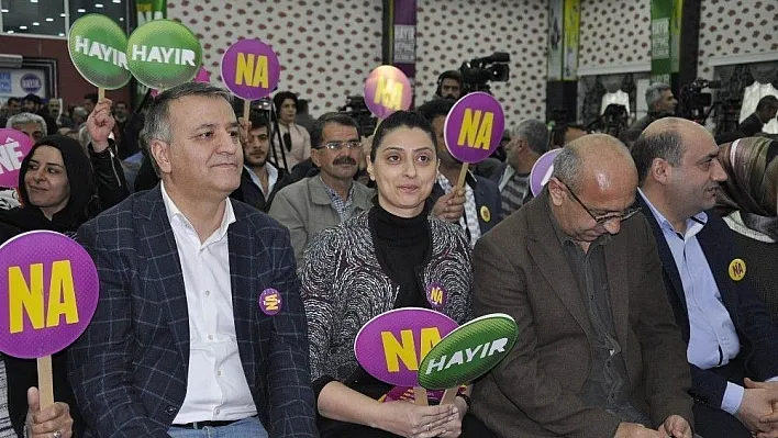 HDP, İstanbul, İzmir ve Diyarbakır’da yaptığı eş zamanlı toplantı ile 16 Nisan’da halk oylamasına sunulacak olan Cumhurbaşkanlığı Sistemi için gerçekleştireceği “Hayır” kampanyasının startını verdi. Merkez Kayapınar ilçesinde bir düğün salonunda gerçekleştirilen toplantıya HDP’li milletvekillerinin yanı sıra Demokratik Bölgeler Partisi (DBP) ile Demokratik Toplum Kongresi (DTK) yöneticileri ve partililer katıldı.