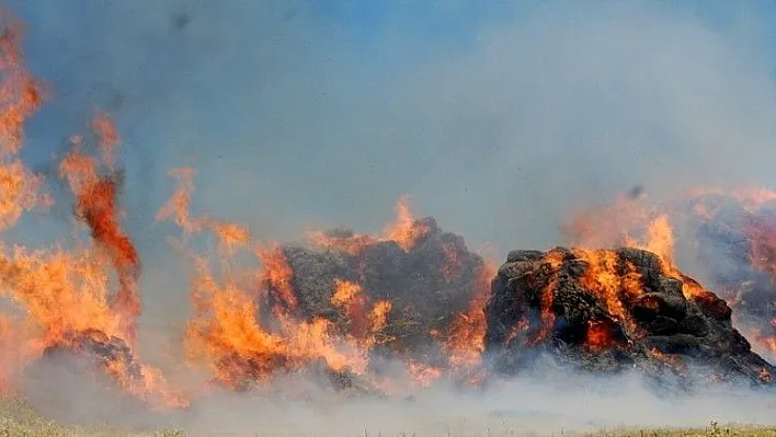 Horasan'da 15 bin balya ot yanarak kül oldu
