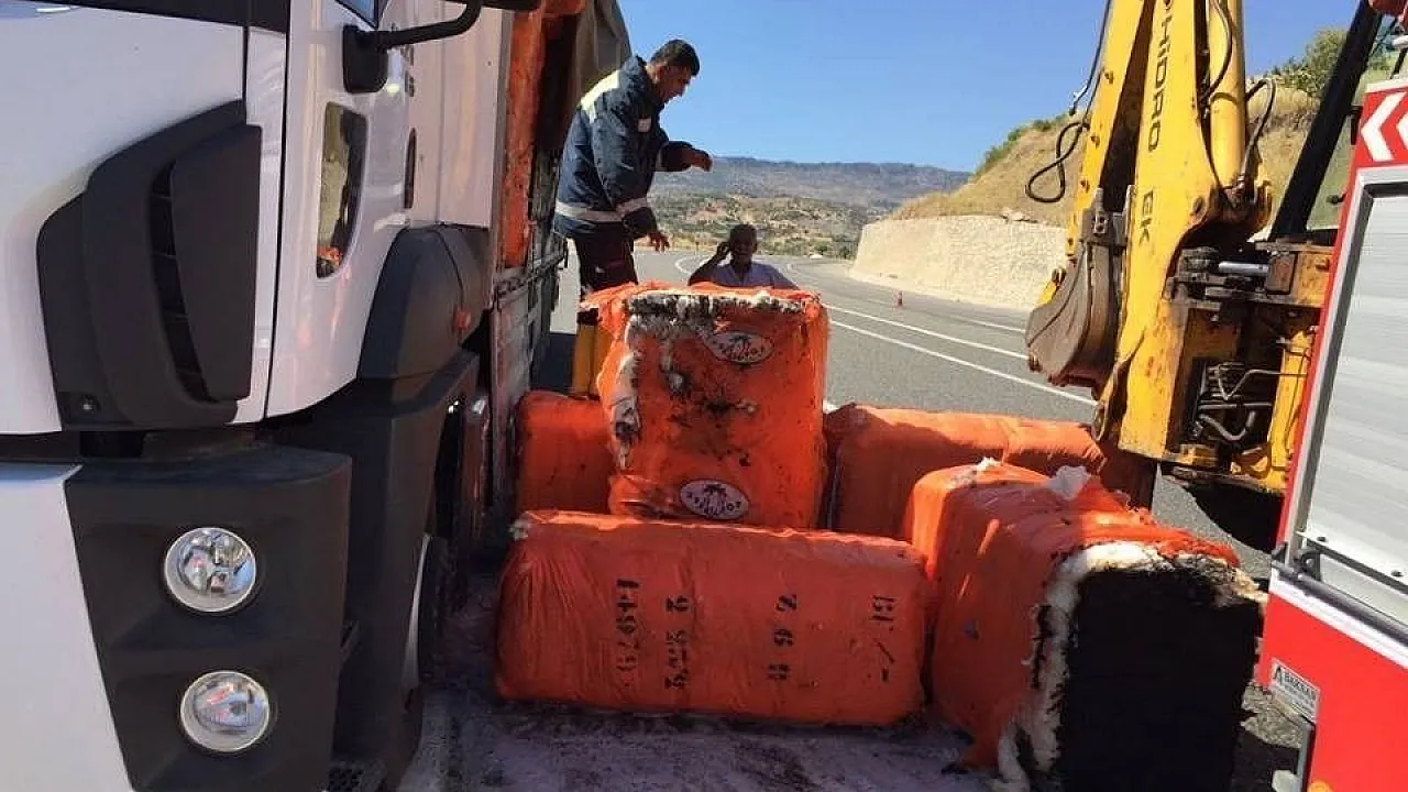 Kamyon üzerindeki pamuk balyaları yandı