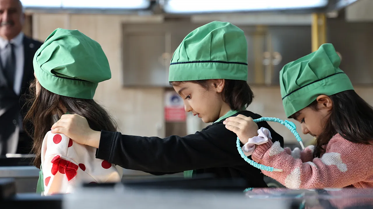 Elazığ'da anaokulu öğrencileri, Şehit Mehmet Öter Turizm Mesleki ve Teknik Anadolu Lisesi'nde 'Minik Şeflerimiz Mutfakta' projesi kapsamında kurabiye yaptı.