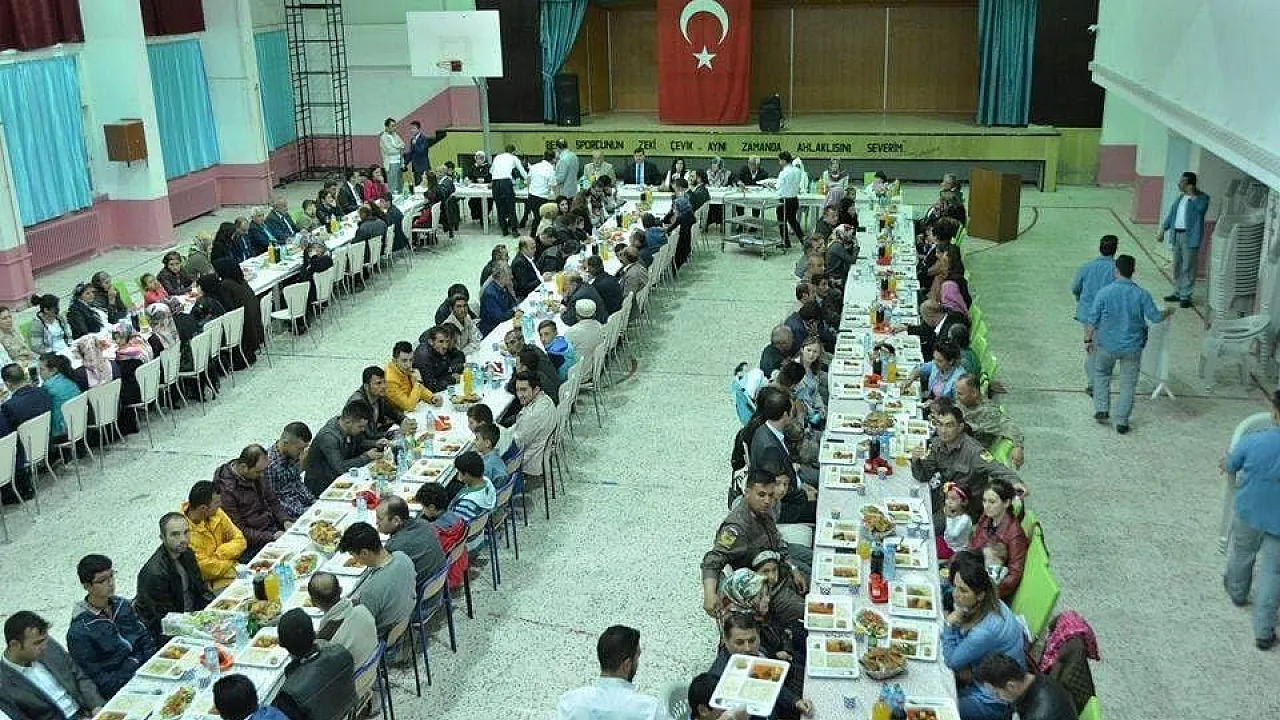 Erzincan Valisi Ali Arslantaş ve Eşi Hatice Arslantaş ile birlikte Erzincan Vali Yardımcısı İlçe Kaymakam Vekili Hatice Bayar Özdemir, ilçe Belediye Başkanı Cevdet Çinar, İl ve ilçe protokol mensupları ile İlçe halkı Refahiye Çok Programlı Anadolu Lisesi Spor Salonunda iftar sofrasında bir araya geldiler.