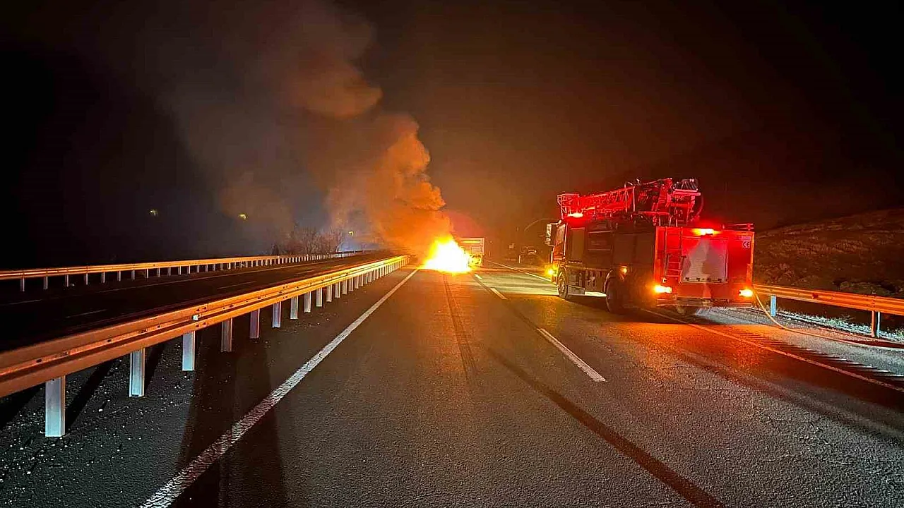 Römorka çarpan otomobil alev topuna döndü