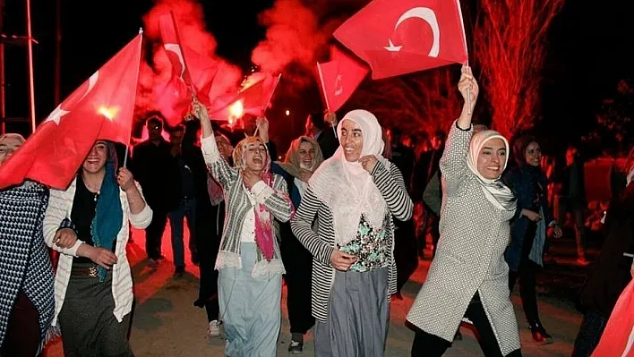 Referandum çalışmalarını sürdürdüğü Tekman'da sonuçları takip eden AK Partili Zehra Taşkesenlioğlu, yüzde 51.4'lük evet oyunu Türk Bayraklarıyla kutladı.