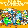 Adres Patent Genel Müdürü Cumhur Abdullah Akbulut’un paylaştığı haritadaki bilgilere göre 81 ilin 2017’deki patent başvuru sayısı şu şekilde: