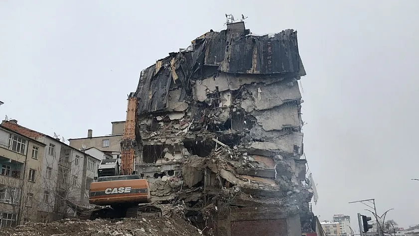 Kahramanmaraş'ta meydana gelen 7.7 ve 7.6 iki büyük deprem sonrası Elazığ'da ağır hasarlı olduğu tespit edilen 8 binanın yıkımına başlandı.