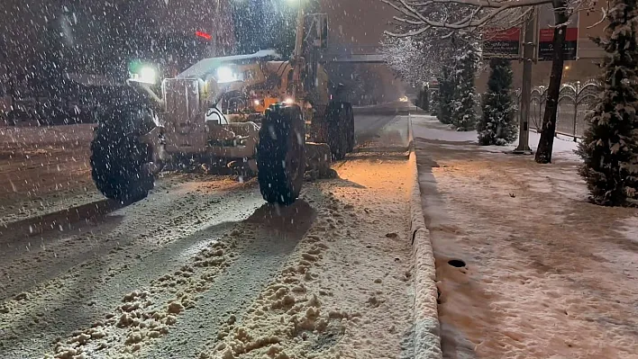 Elazığ'da etkili olan kar yağışı sonrasında araçlar yollarda kalırken, belediye ekipleri ise çalışmalarını aralıksız sürdürüyor.