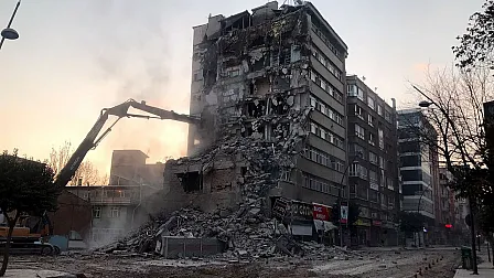 7 katlı binada bugün yıkım işlemleri başladı.