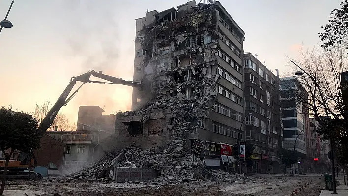 Elazığ'da dün beşik gibi sallanan ve paniğe neden olan binada yıkım işlemi başladı.