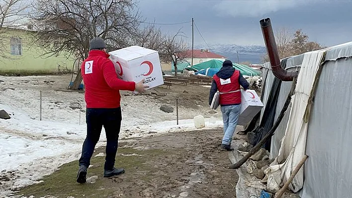 Türk Kızılay ekipleri, Elazığ'da kar nedeniyle ulaşımın güçlükle sağlandığı köylere ve arazide yaşayan göçerlere yardım ulaştırarak ihtiyaçları karşılıyor.